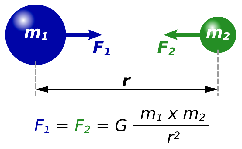 where \(G\) is the gravitational constant \(\approx 6.6743 \cdot 10^{-11} m^3kg^{-1}s^-2\).