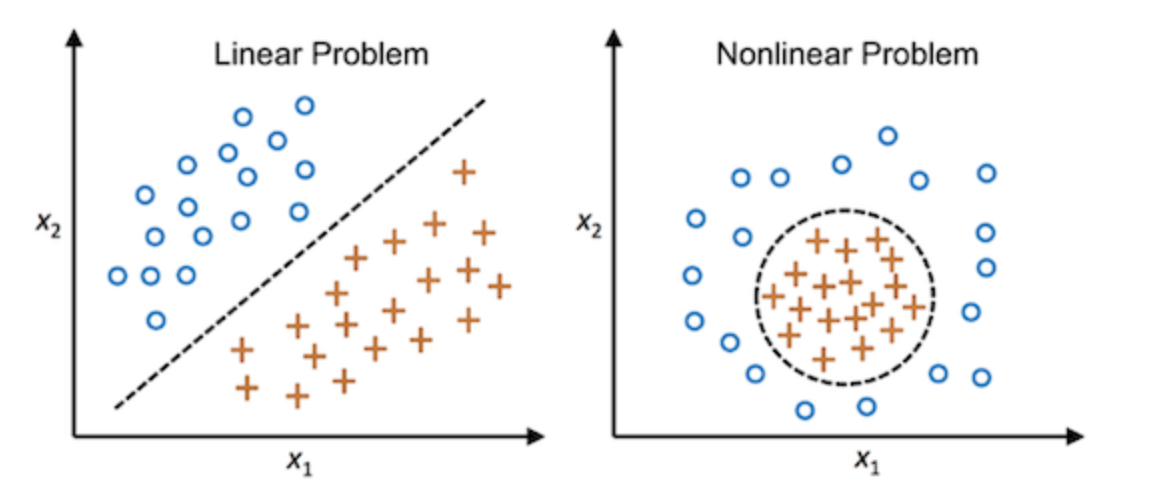 A dataset is linearly separable if you can draw a straight line (or flat surface in higher dimensions) that separates the different groups