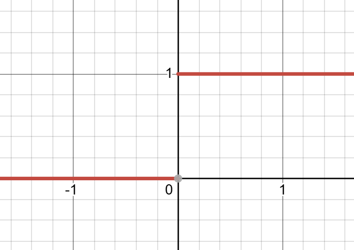 equals \(0\) up until \(x=0\), after which the function equals \(1\): if \(z > 0\), the perceptron gives \(1\) as its output.