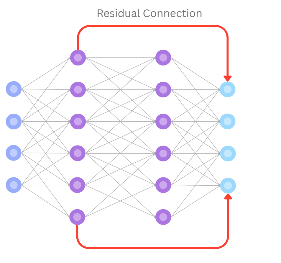 This makes training deeper networks more stable and efficient by preventing the signal from vanishing. and feedforward layers helping to blend and stabilise the information.